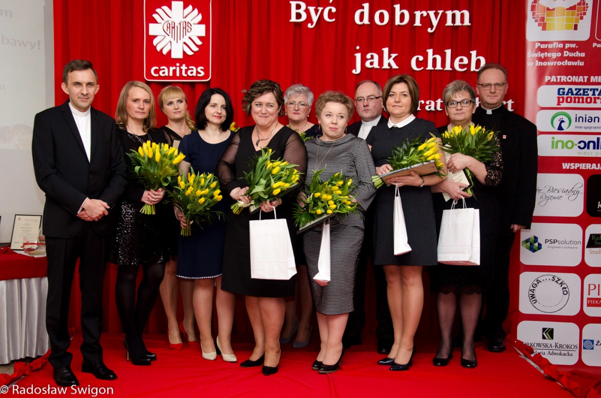 Żyjemy w czasach, które na piedestał wynoszą postawy egoistyczne, zagrażające człowiekowi. Tego typu sytuacje prowadzą do ślepoty i braku zauważenia wokół siebie osób potrzebujących pomocy. Stąd pragniemy coraz mocnej promować w naszej parafii i na terenie Miasta Inowrocławia idee wolontariatu i dzieł miłosierdzia. Piękny wieczór, poświecony refleksji dotyczącej dzieł miłosierdzia, jak również promujący instytucje wolontariatu umilał zespół muzyczny Kornel z Inowrocławia, który przez ponad dziewięć godzin nieustannie porywał wszystkich do zabawy. Oprócz promocji wolontariatu zostały również wręczone osobom wspierającym działania PZC upominki, które przygotował w swojej pracowni i podarował miejscowy artysta plastyk pan Adam Łożykowski. W trakcie trwania uroczystości zostały również wręczone przez dyrektora Caritas Archidiecezji Gnieźnieńskiej ks. Prałata Krzysztofa Stawskiego i proboszcza parafii Świętego Ducha ks. dra hab. Aleksandra Sobczaka podziękowania dla wolontariuszy, którzy bardzo mocno angażują się codziennie w niesienie pomocy potrzebujący i są takimi cichymi aniołami naszej parafii pojawiającymi się zawsze tam gdzie potrzebna jest pomoc. W promowanie idei wolontariatu i szerzenie pomocy włączyły się również różne osoby życia publicznego jak aktorzy, muzycy, sportowcy, politycy oraz różne instytucje. Wśród obecnych na balu był pan Wojciech Piniewski zastępca Prezydenta Miasta Inowrocławia, pani Jadwiga Kalinowska Dyrektor Miejskiego Ośrodka Pomocy Społecznej w Inowrocławiu, pan Rafał Walter Dyrektor Powiatowego Centrum Pomocy Rodzinie w Inowrocławiu oraz wielu innych.